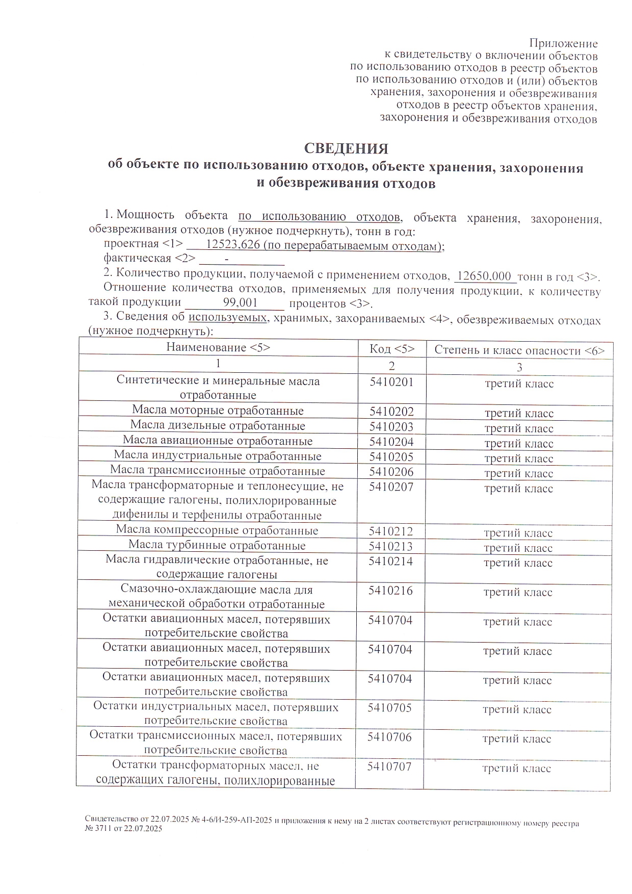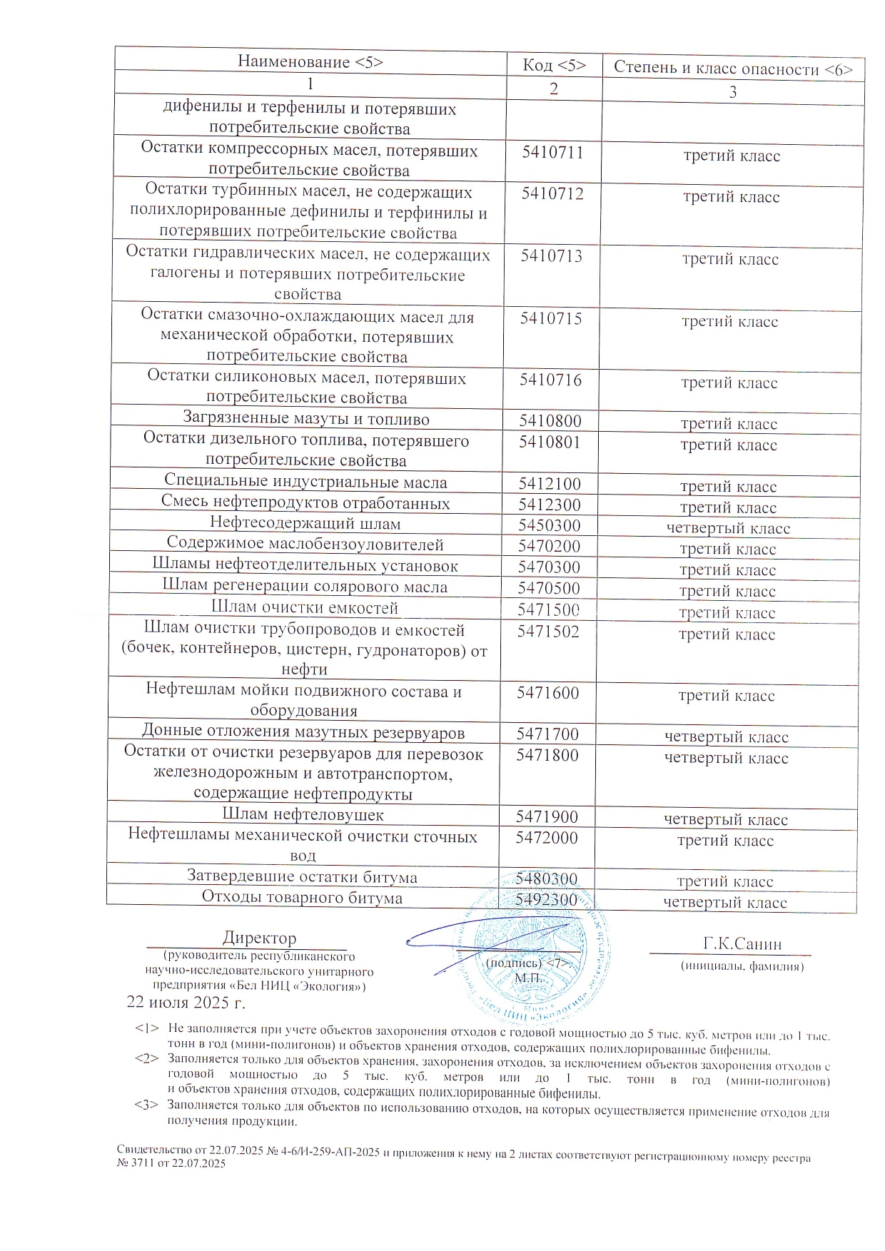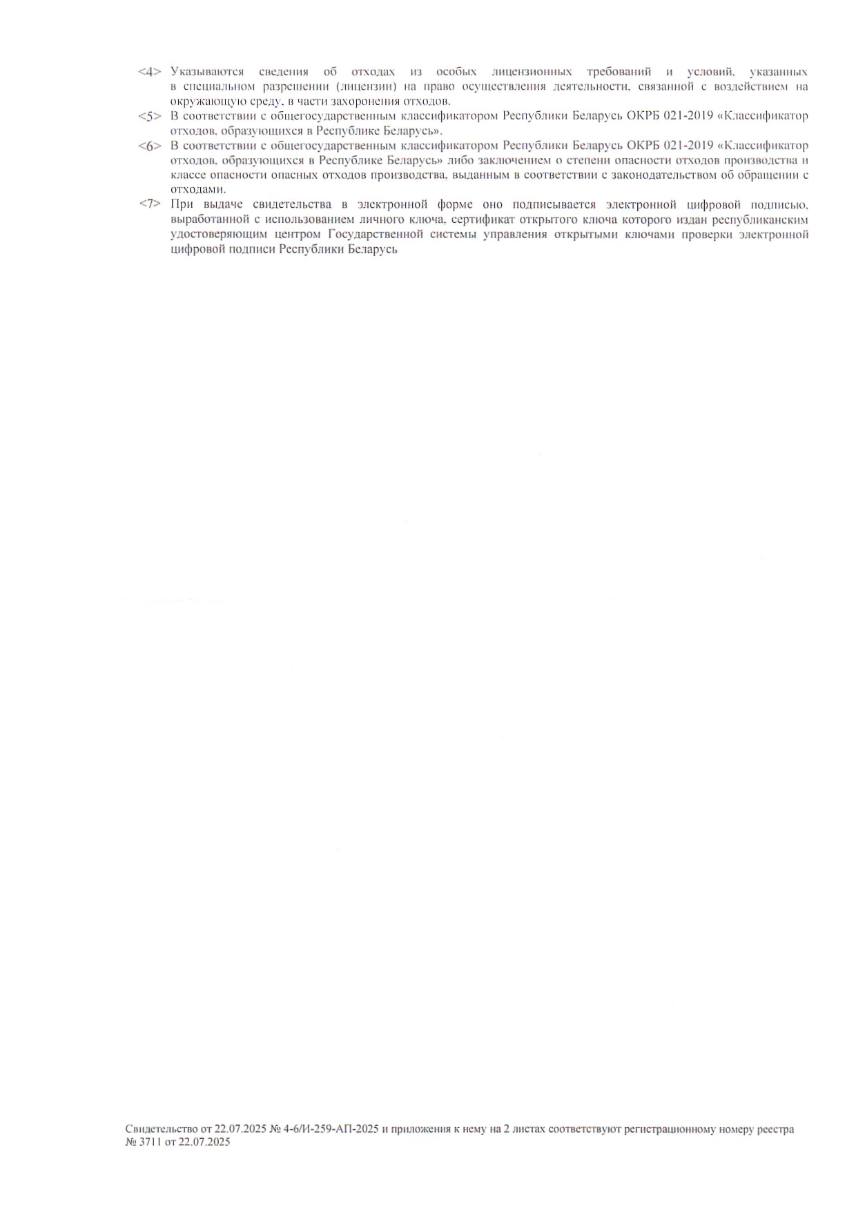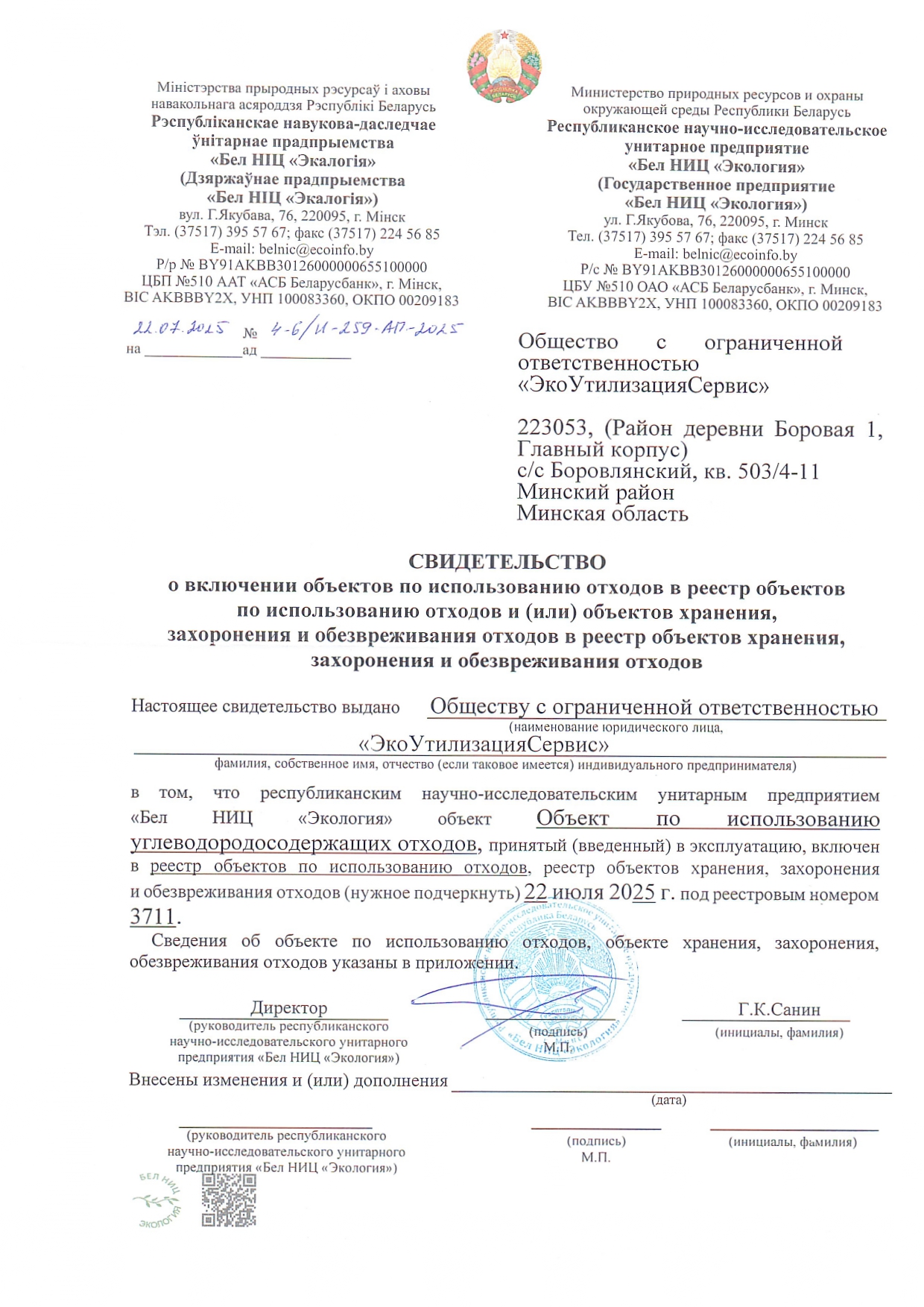 Свидетельство БелНИЦ экология о включении объектов по использованию отходов